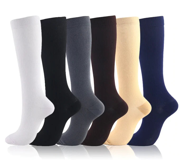 Ces chaussettes appliquent généralement trop de pression, ce qui restreint le flux sanguin, provoquant l'effet inverse : la fatigue des jambes.